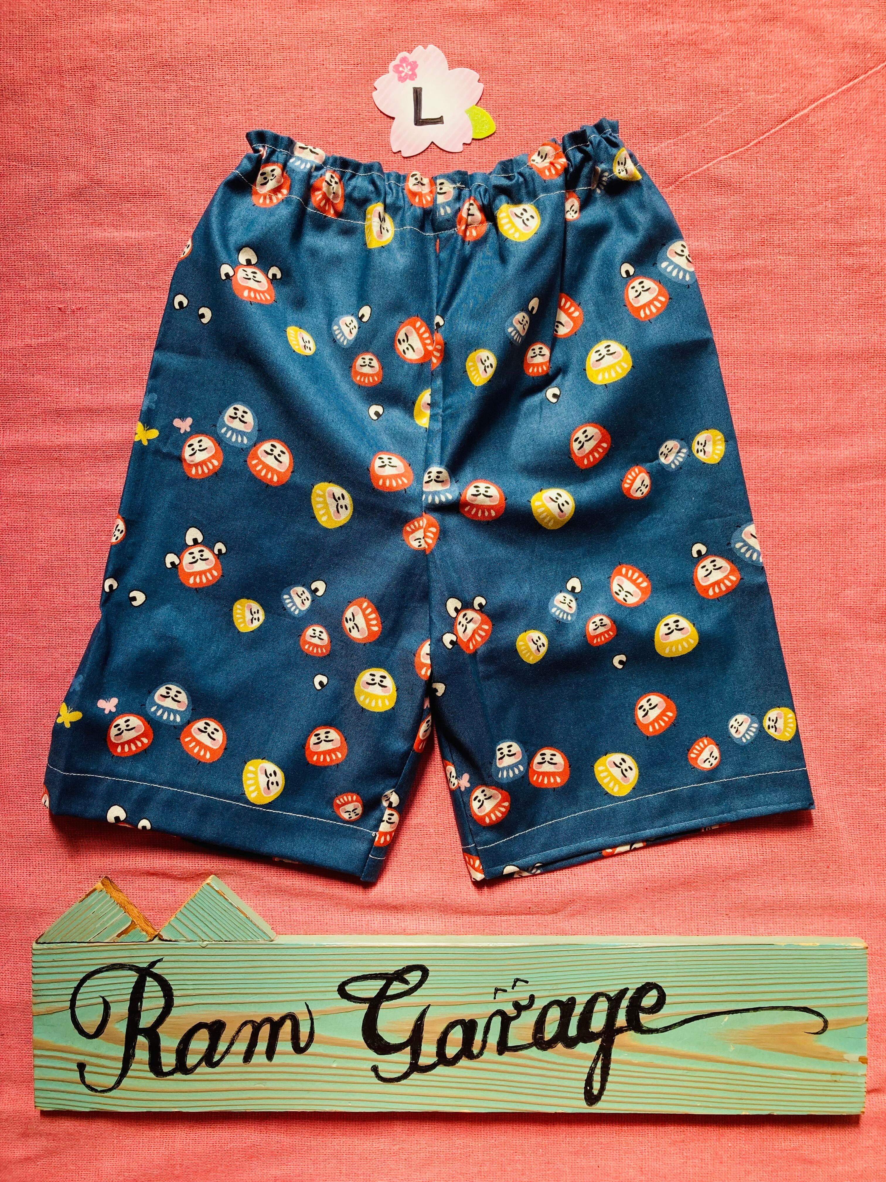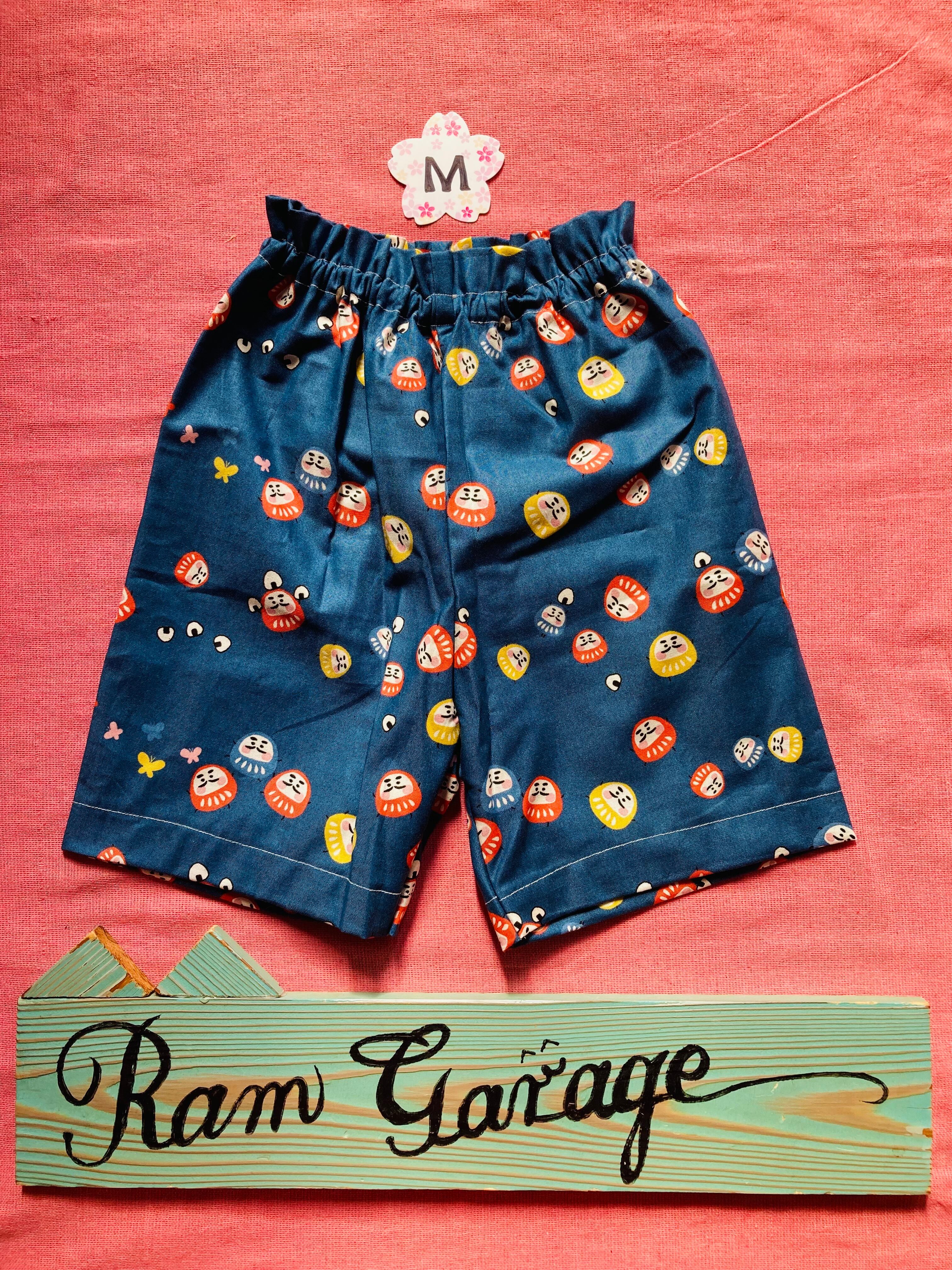 和柄 子供パンツ|手作り キッズズボン 日本製|だるま柄 ベビー服|兄弟リンクコーデ|男女兼用 夏服|ハンドメイド 子供服|出産祝い プレゼント|かぼちゃパンツ 和風|軽い動きやすいズボン|ユニセックス 子供ファッション